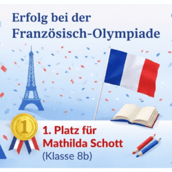 Herzlichen Glückwunsch an Mathilda Schott aus der Klasse 8b! 🎉 Mathilda hat bei der 2. Stufe der Französisch-Olympiade des Landesamtes für Schule und Bildung (LaSuB), Standort Leipzig, den 1. Platz erreicht. Damit hat sie sich für den Landesausscheid im April qualifiziert. Diese Leistung ist ein großer Erfolg und zeigt, wie…